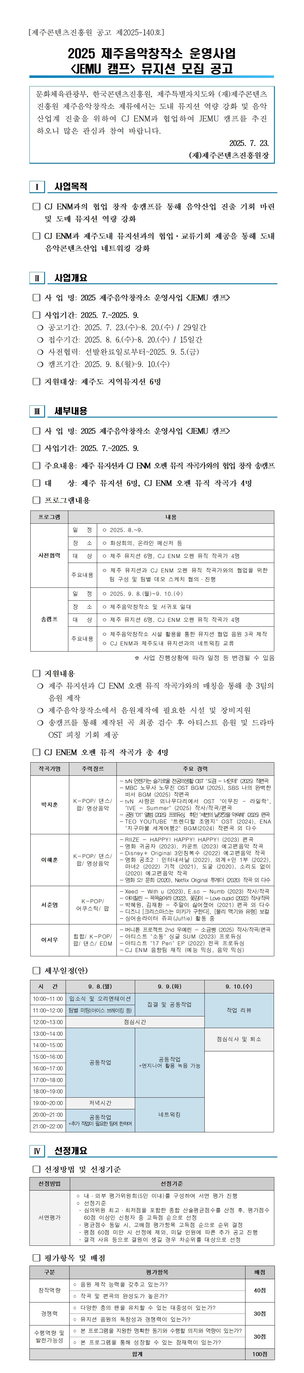 2025 제주음악창작소 운영사업 <JEMU 캠프> 뮤지션 모집 공고 |