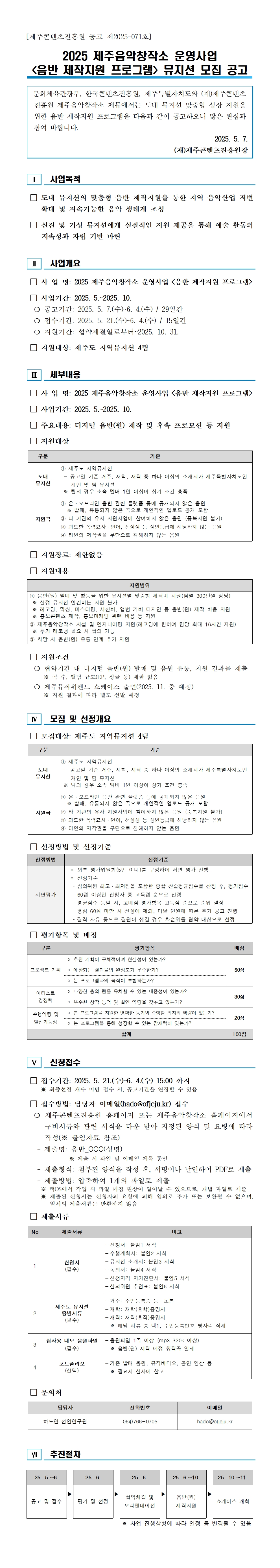 2025 제주음악창작소 운영사업 <음반 제작지원 프로그램> 뮤지션 모집 공고 |