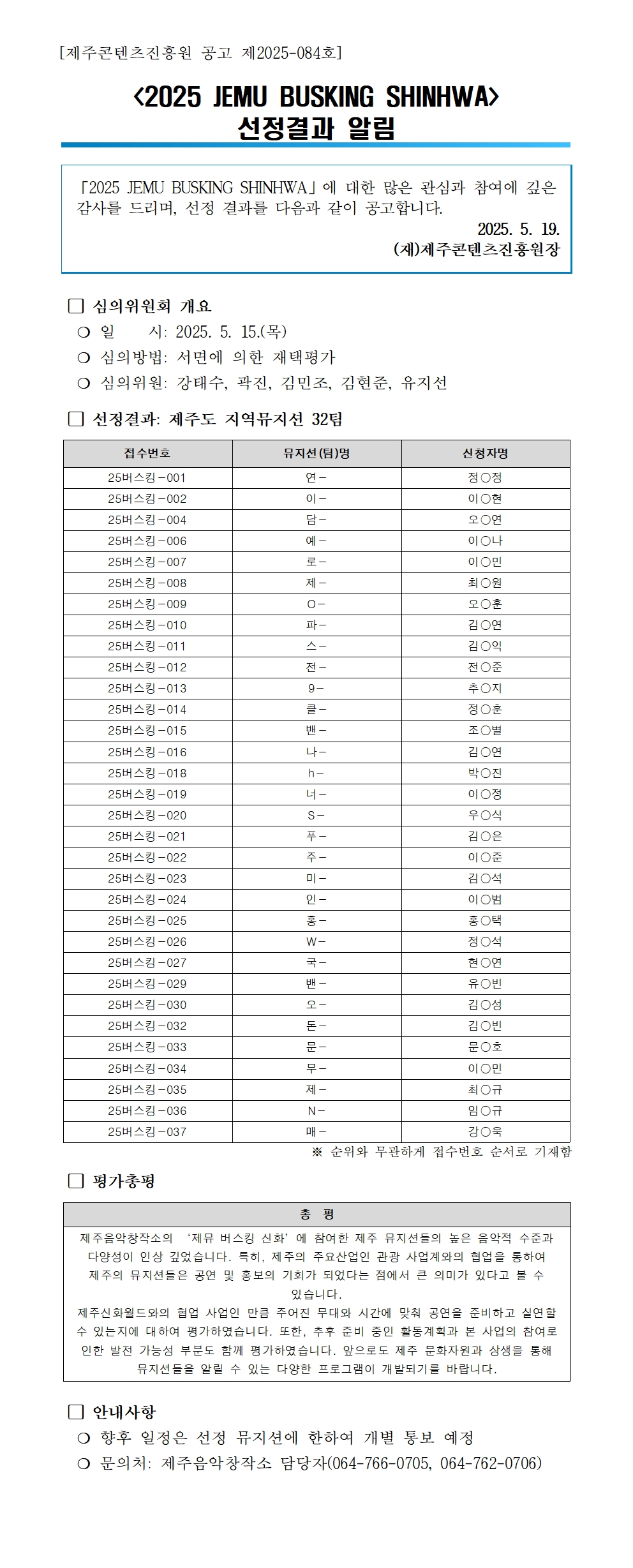 <2025 JEMU BUSKING SHINHWA> 선정결과 알림 게시물 상세보기