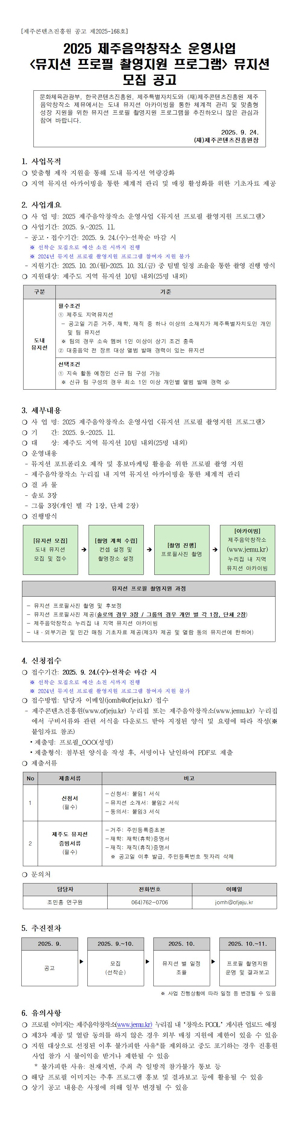 2025 제주음악창작소 운영사업 <뮤지션 프로필 촬영지원 프로그램> 뮤지션 모집 공고 |