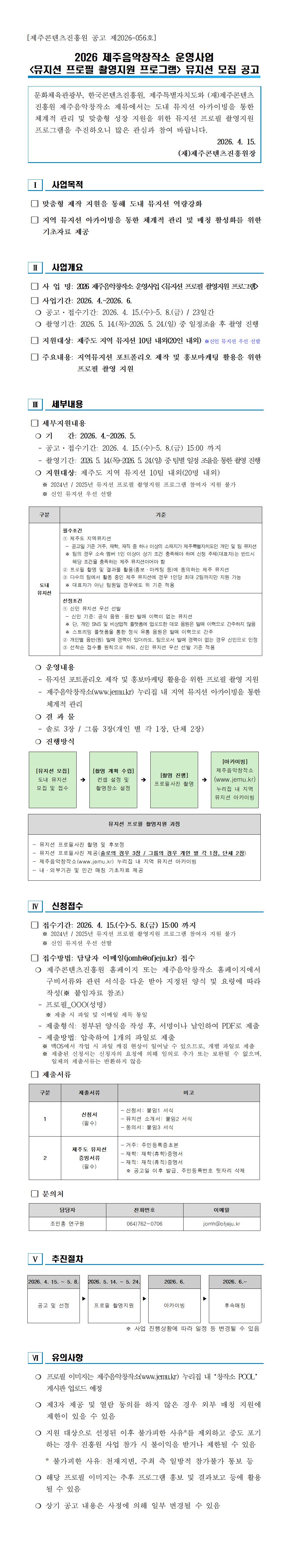 2026 제주음악창작소 운영사업 <뮤지션 프로필 촬영지원 프로그램> 뮤지션 모집 공고 |