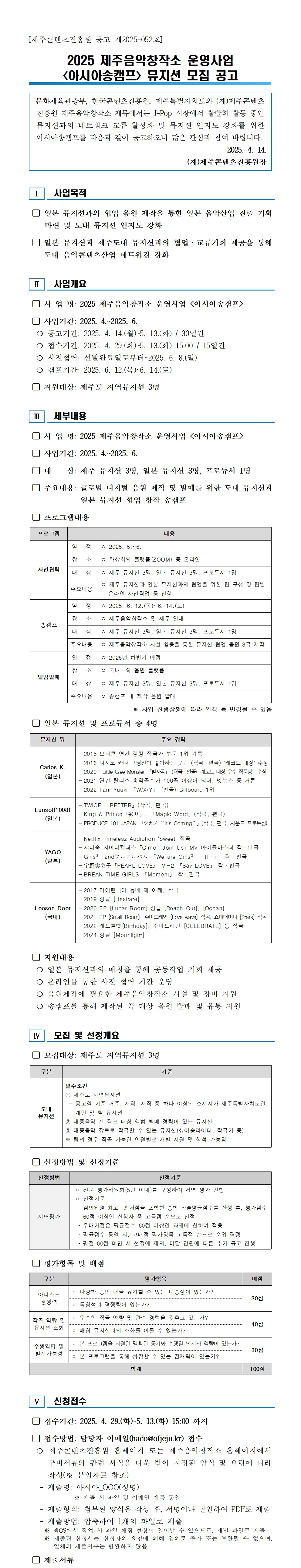 [ 소리곶 ] 아시아송캠프 뮤지션 모집 공고